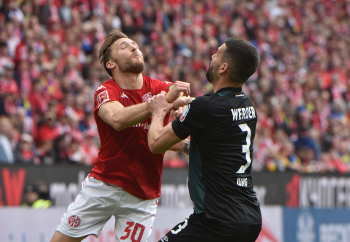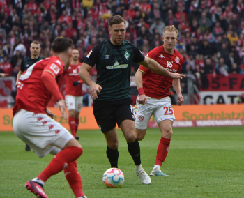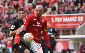 ANTHONY CACI (19, FSV Mainz 05), Andreas Hanche-Olsen (25, FSV Mainz 05) gegen Niclas Füllkrug