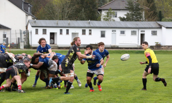 01.04.2023 xmgoodx Offenbach am Main Rugby Bundesliga Süd/West Offenbacher SCR (OSC Rosenhöhe) – SC Neuenheim Wessel van Dijk (4, Rosenhöhe) gegen Bachofer Markus (17, Neuenheim) ***** Foto: A2Bildagentur Hartenfelser