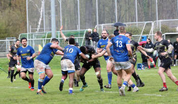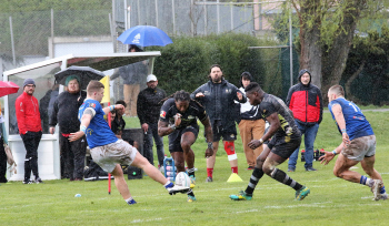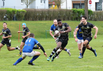 01.04.2023 xmgoodx Offenbach am Main Rugby Bundesliga Süd/West Offenbacher SCR (OSC Rosenhöhe) – SC Neuenheim Remi Goupile (7, Rosenhöhe) gegen Mondli Nkos (10, Neuenheim) ***** Foto: A2Bildagentur Hartenfelser