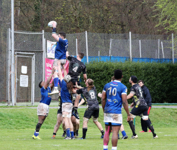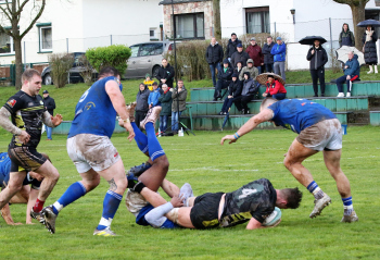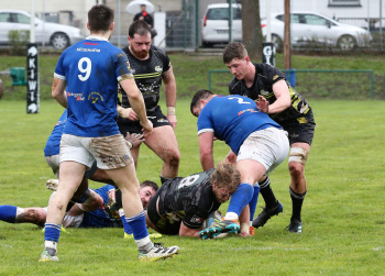 01.04.2023 xmgoodx Offenbach am Main Rugby Bundesliga Süd/West Offenbacher SCR (OSC Rosenhöhe) – SC Neuenheim Wessel van Dijk (4, Rosenhöhe) gegen Robert Amelung (Neuenheim) ***** Foto: A2Bildagentur Hartenfelser