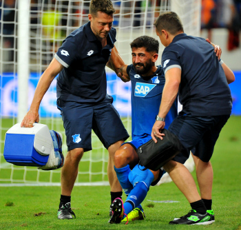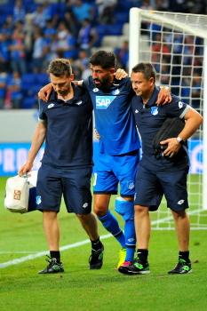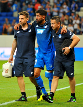 Physiotherapeut Peter GEIGLE (TSG 1899 Hoffenheim), Kerem Demirbay (TSG 1899 Hoffenheim) verletzt, Mannschaftsarzt Dr. Ralph Kern (TSG 1899 Hoffenheim).