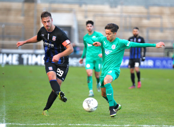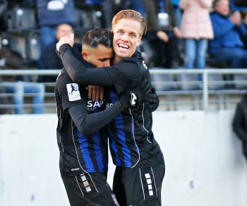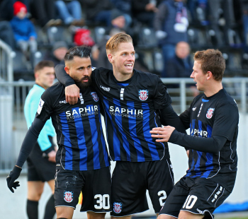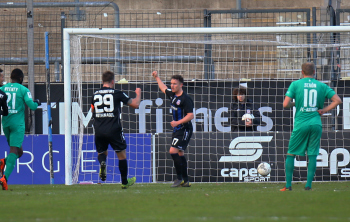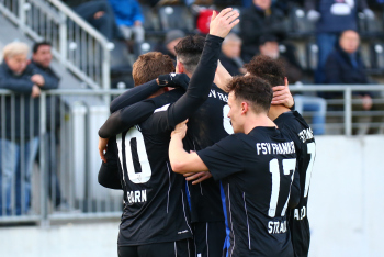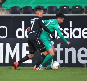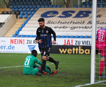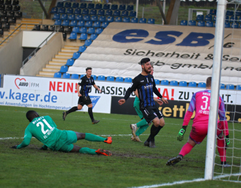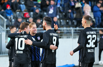 30.11.2019, xxx, Frankfurt, PSD Arena, Fussball, Regionalliga Suedwest, Saison 2019-2020, FSV Frankfurt gegen FC-Astoria Walldorf; Jubel nach dem 2:0 durch Ahmed Azaouagh (FSV Frankfurt),Denis Mangafic (FSV Frankfurt), Timo Kunert (FSV Frankfurt), Mirco Born (FSV Frankfurt), Arif Gueclue (FSV Frankfurt), Luca Bazzoli (FSV Frankfurt),