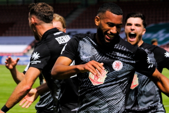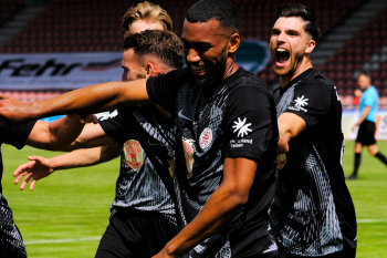 Jubel nach dem 2:0 Sieg die beiden Torschützen NAEL NAJJER (32, Hessen Kassel) und Nasuhi-Noah Jones (30, Hessen Kassel)