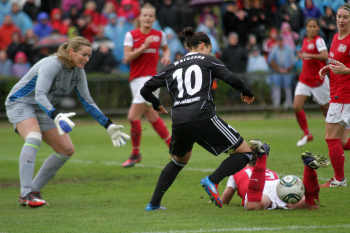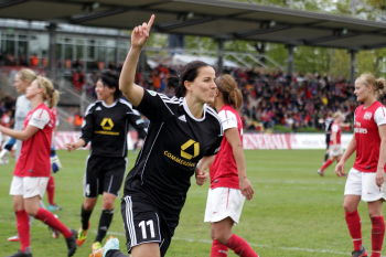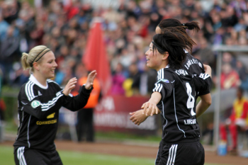 Torjubel nach dem Tor zum 2:0 Jessica Landstr?m, Saki Kumagai, Svenja Huth (FFC Frankfurt)