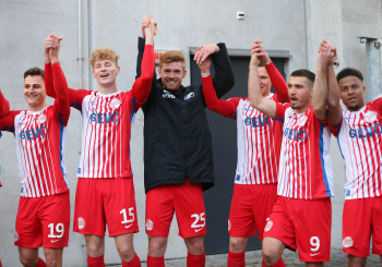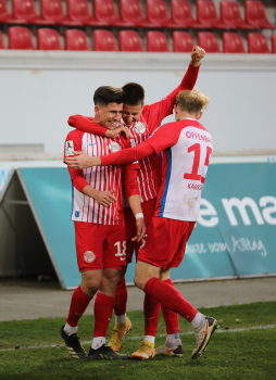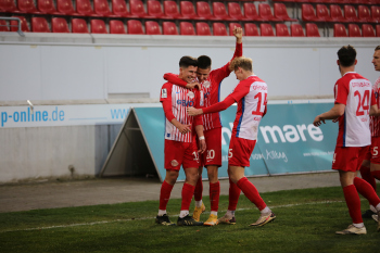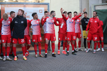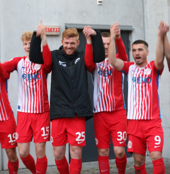 Schlussjubel u.a. Mathias Fetsch (25, OFC), Serkan Firat (9, OFC), Deniz Tunay (18, OFC)