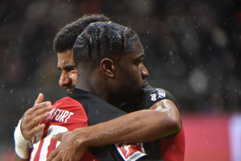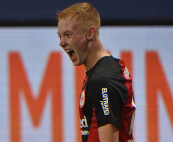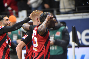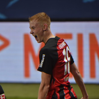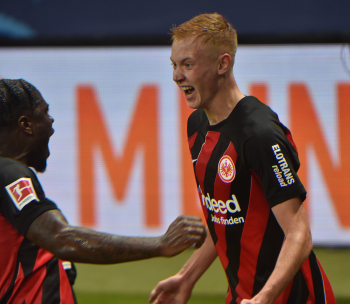 Torjubel Hugo Larsson (16, Eintracht Frankfurt) mit Junior Dina Ebimbe (26, Eintracht Frankfurt)