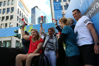 vorne Kristina Vogel, zweifache Olympiasiegerin im Bahnradfahren,