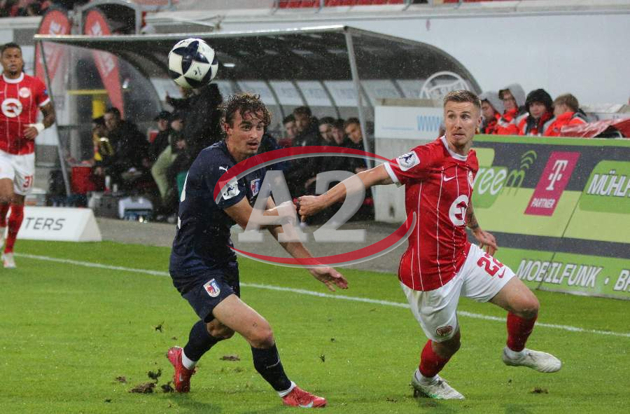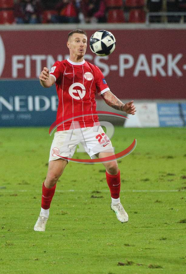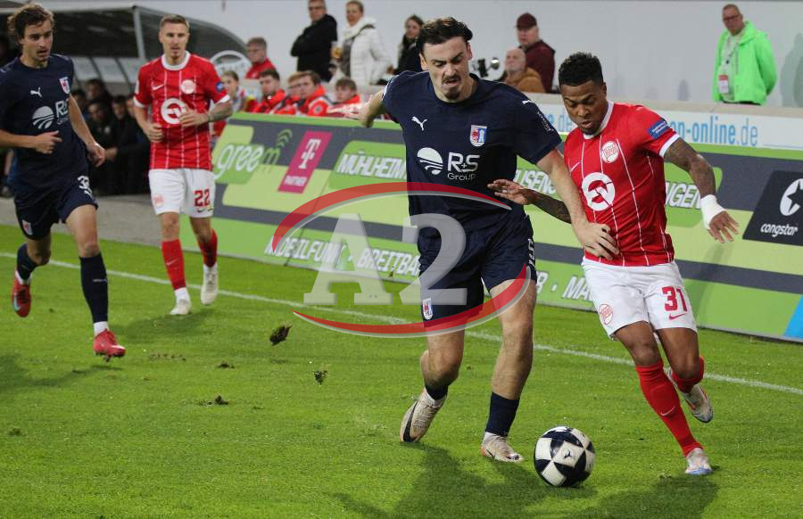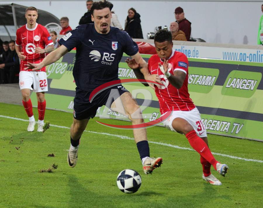 Marius Grösch (Fulda) gegen Ron Berlinski (21, OFC), daneben Valdrin Mustafa (9, OFC)