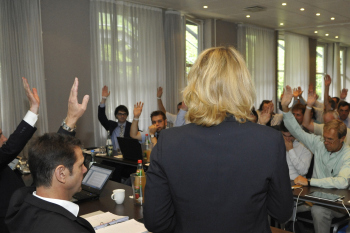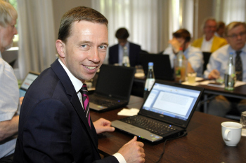 Anh?nger des von Lucke mit gegr?ndeten Vereins Weckruf 2015 in einem Hotel in Kassel