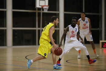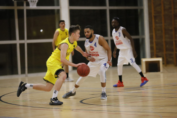 08.12.2019 Neu-Isenburg, Sportpark Landesliga Basketball Saison 2019/2020 BC Neu-Isenburg - EOSC Offenbach Luka Nicin (8 BCN) gegen Kidzudic M. (EOSC) ****** Foto: Peter Hartenfelser