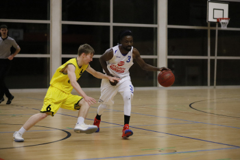 08.12.2019 Neu-Isenburg, Sportpark Landesliga Basketball Saison 2019/2020 BC Neu-Isenburg - EOSC Offenbach Aubayir C. 12 (EOSC) gegen Bangang 9 (BCN) ****** Foto: Peter Hartenfelser