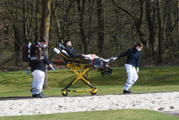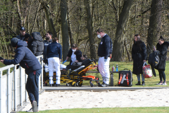 03.04.2022 Neu-Isenburg, Zeppelinheim Fussball Amateure Verbandsliga Saison 2021/2022 SV Pars Neu-Isenburg gegen JSG Rodgau Milad Salem (8, Pars) mus verletzt ins Krankenhaus gebracht werden ***** Foto: A2Bildagentur Hartenfelser