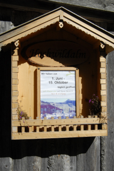 Die Hochwildalm hat von Juni bis Mitte Oktober t?glichge?ffnet, danach nur noch Mittwochs, Samstag und Sonntag