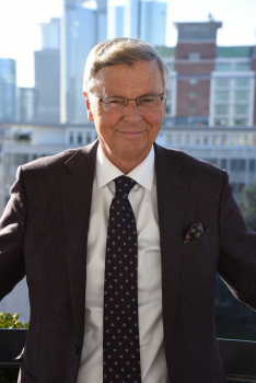 Talkshow mit Gästen aus der Region mit Blick auf die Skyline