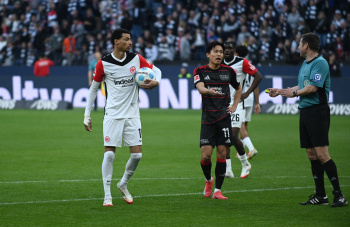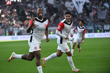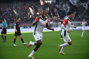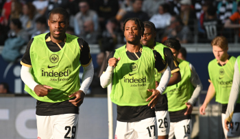 beim warmlaufen Niels NKOUNKOU (29, Eintracht Frankfurt) und Elye Wahi (17, Eintracht Frankfurt)