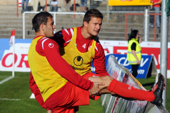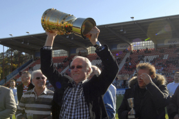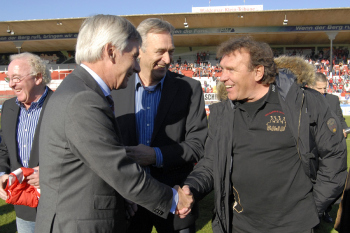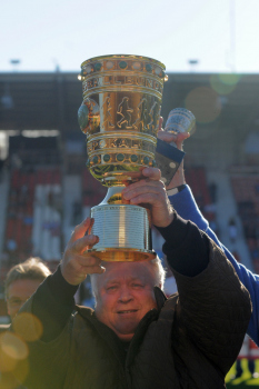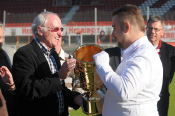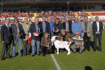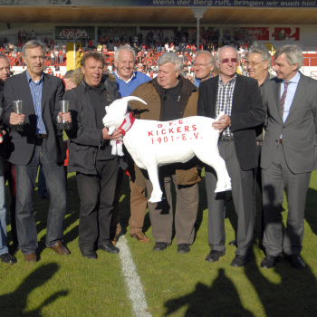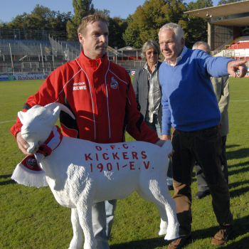 09.10.2010, Testspiel zur Erinnerung an den Pokal vor 40 Jahren, Offenbacher Kickers - 1.FC Köln, die Pokalhelden Niko Semlitsch, Seppl Weilbecher , Egon Schmidt, mit dem Ziegenbock