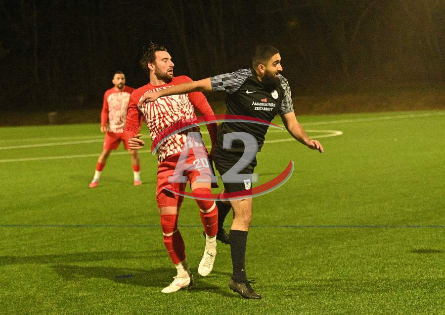 Paul Bickel (20, Spvgg. 03 Neu-Isenburg) und Azis Bidou (24, Spvvg. 03 Neu-Isenburg) gegen Mohammed Hakimi (OSC)