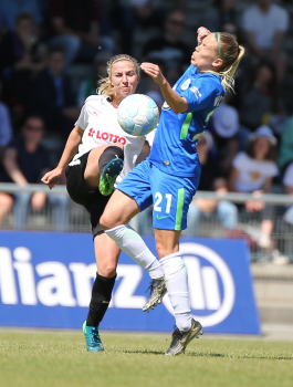 06.05.2018 xcex Deutschland, Frankfurt, Fussball, Frauenfussball Allianz Frauen-Bundesliga Saison 2017/2018 1. FFC Frankfurt gegen VfL Wolfsburg Jackie Groenen (Frankfurt) gegen Lara Dickenmann (Wolfsburg) ***** Foto: A2/Hartenfelser