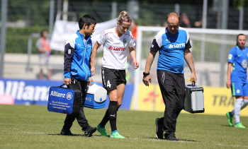 06.05.2018 xcex Deutschland, Frankfurt, Fussball, Frauenfussball Allianz Frauen-Bundesliga Saison 2017/2018 1. FFC Frankfurt gegen VfL Wolfsburg Kathrin Hendrich (Frankfurt) verletzt, schmerzverzerrtes Gesicht ***** Foto: A2/Hartenfelser
