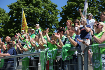 06.05.2018 xcex Deutschland, Frankfurt, Fussball, Frauenfussball Allianz Frauen-Bundesliga Saison 2017/2018 1. FFC Frankfurt gegen VfL Wolfsburg die wolfsburger Fans feiern den Sieg ***** Foto: A2/Hartenfelser