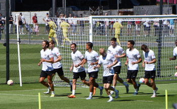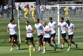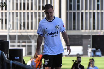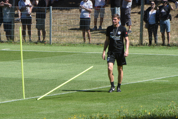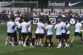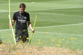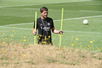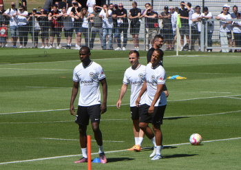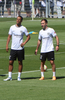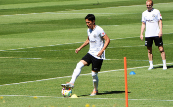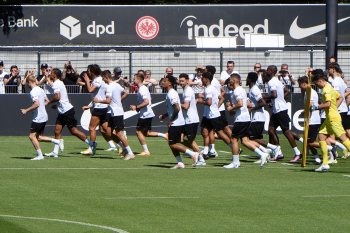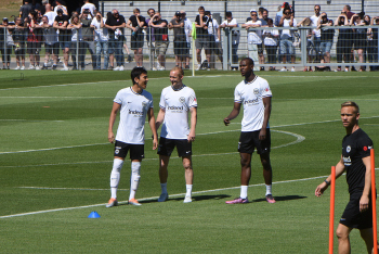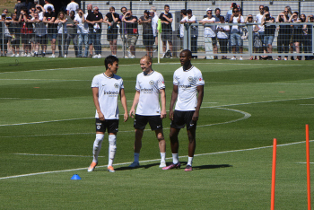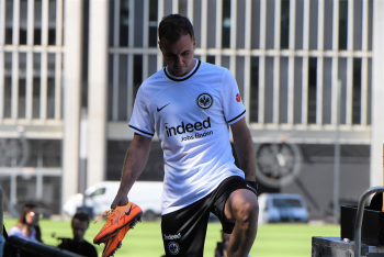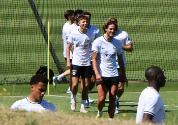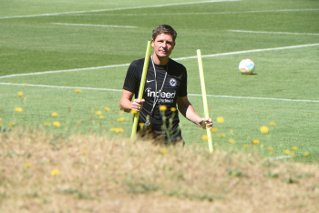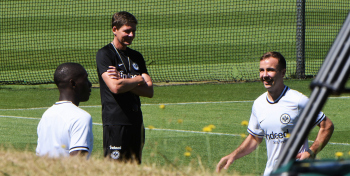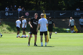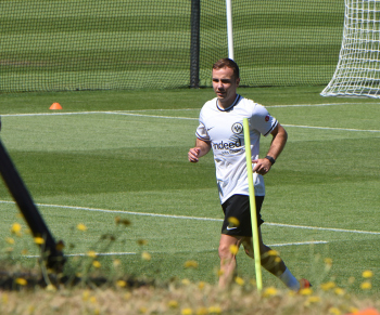 gut gelaunt beim ersten Training u.a. Goncalo Paciencia (39, Eintracht Frankfurt), Mario Götze (Eintracht Frankfurt) Timothy Chandler (22, Eintracht Frankfurt), Sebastian Rode (17, Eintracht Frankfurt)
