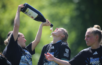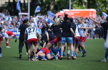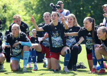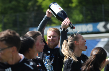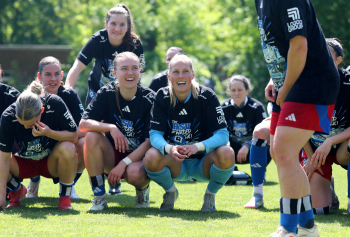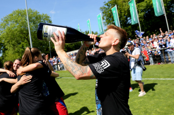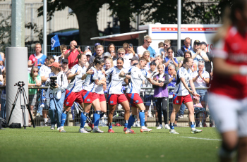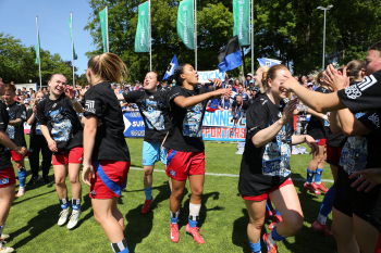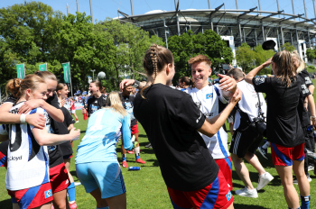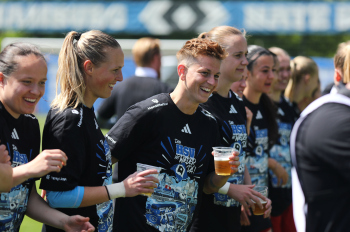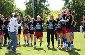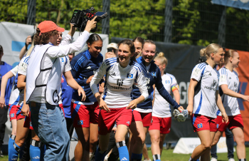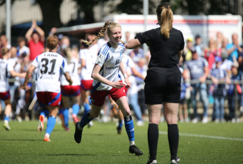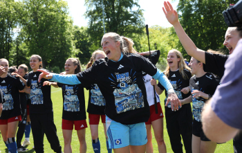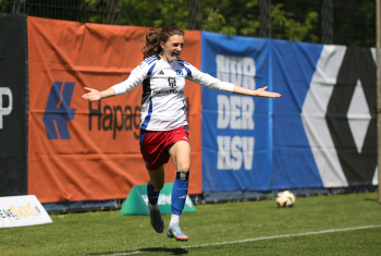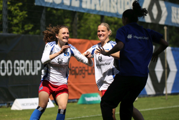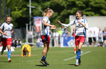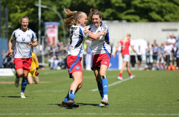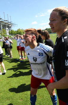 11.05.2025, xcex, GER, Hamburg, Volksparkstadion Platz 6, Frauenfussball, 2. Frauen-Bundesliga, Saison 2024/2025, Spieltag 25, HSV Frauen, Hamburger SV Frauen - SC Freiburg II, Torjubel Svea Stoldt (HSV), Lotta Wrede (HSV), Jubel, Freude, Emotionen, Goal
