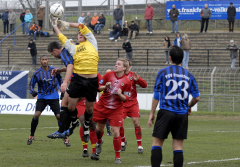 Oberliga Saison 2006/2007, FSV Frankfurt vs Borusia Fulda, Markus Gaubatz vs Torwart Tobias Wolf Bild ist Honorarpflichtig, auf Anfrage in h?herer Qualit?t