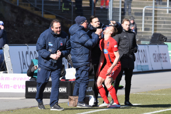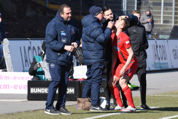 Marcel Titsch-Rivero ( 1. FC Heidenheim) gegen Slobodan Medojevic, Tobias Kempe und Felix Platte (SV98)