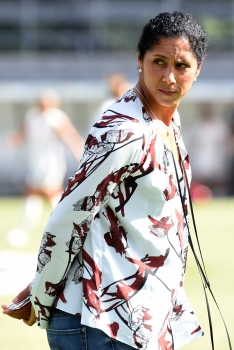 Bundestrainerin Steffi Jones (GER). Deutschland, Sandhausen: Sport, Fussball, Testlaenderspiel der Frauen: Deutschland vs Brasilien am 04.07.2017, BWT-Stadion Am Hardtwald. *** Quelle: Hartenfelser, hoehere Aufloesung auf Anfrage, Verwendung honorarpflichtig, Belegexemplar erbeten IBAN: DE04 5055 0020 0112 0515 70 SWIFT/BIC HELADEF10FF UST-Nummer 3582501720 MWST-Satz 7%