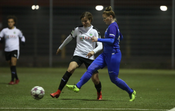 21.02.2018 xcex Deutschland, Frankfurt, Fussball, Frauenfussball 2. Frauen-Bundesliga Süd Saison 2017/2018 1. FFC Frankfurt II - TSV Schott Mainz Alexandra Emmerling (FFC) gegen Samantha Herrmann (TSV) ***** Foto: A2/Hartenfelser