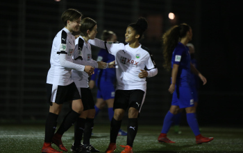 21.02.2018 xcex Deutschland, Frankfurt, Fussball, Frauenfussball 2. Frauen-Bundesliga Süd Saison 2017/2018 1. FFC Frankfurt II - TSV Schott Mainz Torjubel FFC Frankfurt, Jubel, Freude, Emotionen ***** Foto: A2/Hartenfelser