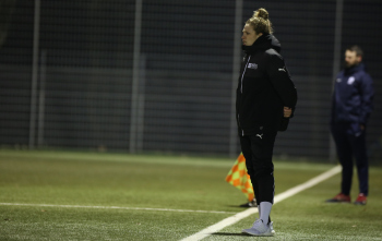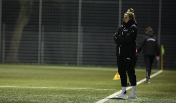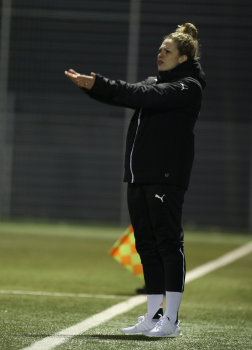 21.02.2018 xcex Deutschland, Frankfurt, Fussball, Frauenfussball 2. Frauen-Bundesliga Süd Saison 2017/2018 1. FFC Frankfurt II - TSV Schott Mainz Trainerin Kim Kulig (FFC) an der Seitenlinie ***** Foto: A2/Hartenfelser
