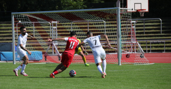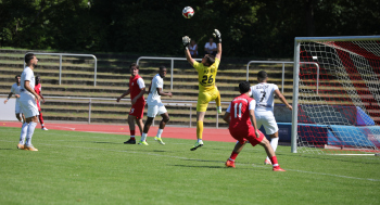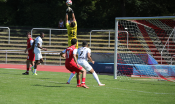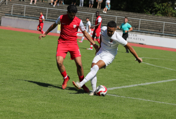 Benomar, Souhail (11, Spvgg. 03 Neu-Isenburg) gegen Manuel Konate Lueken (DJK Spfr. Bad Homburg ), Torwart Dimitrios Gkioulmetaroglou ((DJK Spfr. Bad Homburg )
