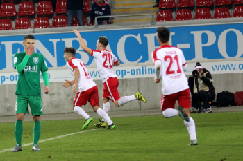Torjubel nach dem Tor zum 1:0 durch den Torsch?tzen Robin Scheu (OFC), Ilias Azaouaghi (Watzenborn) entsetzt