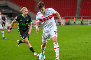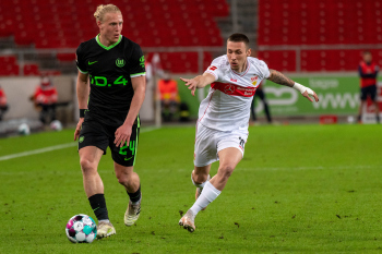 Deutschland, Stuttgart, 21.04.2021, Fussball, Bundesliga: VfB Stuttgart vs VfL Wolfsburg, Saison 2020/2021, 30. Spieltag, Mercedes-Benz Arena