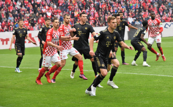 Dominik Kohr (31, 1. FSV Mainz 05), JAlexander Hack (42, 1. FSV Mainz 05), davor Joshua Kimmich (6, FCB), Niklas Süle (4, FCB) und Robert Lewandowski (9, FCB)