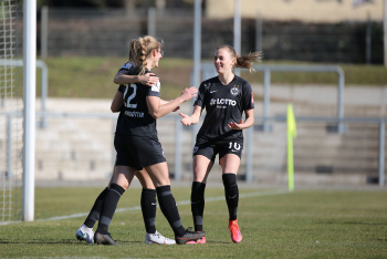 Torjubel Eintracht Frankfurt Frauen, Jubel, Freude, Emotionen, Goal celebration, Tanja Pawollek, Laura Freigang, Lara Prasnikar (SGE)