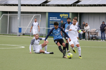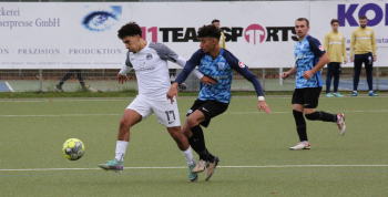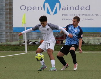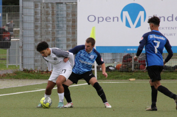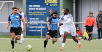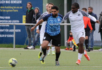 Josef Gallus und Mohammed Hakimi (OSC Rosenhöhe) gegen  Aurelien Bihangou (Kickers Obertshausen)