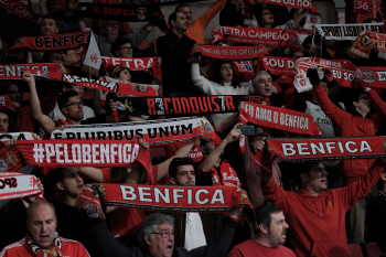 15.02.2020 xkhx Lissabon, Pavilhão da Luz Nº 2 Men's EHF Cup 2019/2020, Benfica Lissabon gegen: MT Melsungen Die Fans von Benfica singen und zeigen die Schals