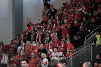 15.02.2020 xkhx Lissabon, Pavilhão da Luz Nº 2 Men's EHF Cup 2019/2020, Benfica Lissabon gegen: MT Melsungen gute Laune bei den mitgereisten Fan der MT Melsungen