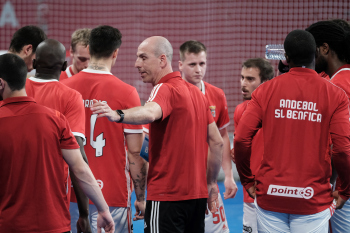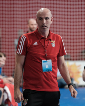 15.02.2020 xkhx Lissabon, Pavilhão da Luz Nº 2 Men's EHF Cup 2019/2020, Benfica Lissabon gegen: MT Melsungen Trainer Benfica Lissabon Carlos Resende