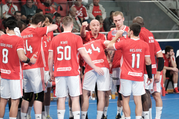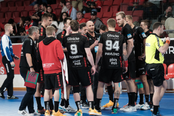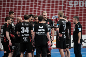 15.02.2020 xkhx Lissabon, Pavilhão da Luz Nº 2 Men's EHF Cup 2019/2020, Handball Benfica Lissabon gegen: MT Melsungen Die Mannschaft von MT Melsungen in der Pause