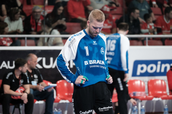 15.02.2020 xkhx Lissabon, Pavilhão da Luz Nº 2 Men's EHF Cup 2019/2020, Benfica Lissabon gegen: MT Melsungen enttäuscht Torwart Johan Sjöstrand (1, MT Melsungen)