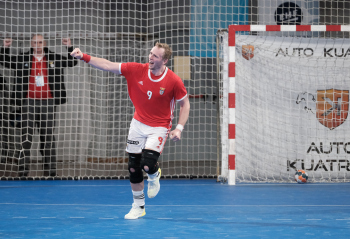 15.02.2020 xkhx Lissabon, Pavilhão da Luz Nº 2 Men's EHF Cup 2019/2020, Handball Benfica Lissabon gegen: MT Melsungen Torjäger Petar Djordjic (Benfica Lissabon) jubelt