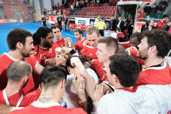 15.02.2020 xkhx Lissabon, Pavilhão da Luz Nº 2 Men's EHF Cup 2019/2020, Benfica Lissabon gegen: MT Melsungen Jubel bei den Spielern von (Benfica Lissabon)