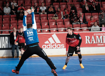 15.02.2020 xkhx Lissabon, Pavilhão da Luz Nº 2 Men's EHF Cup 2019/2020, Handball Benfica Lissabon gegen: MT Melsungen Torwart Johan Sjöstrand (1, MT Melsungen) gegen Belone Moreira (Benfica Lissabon)