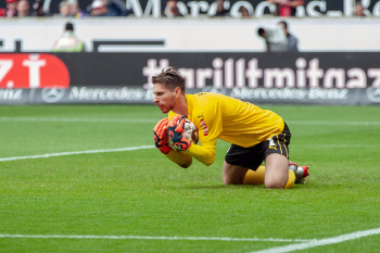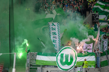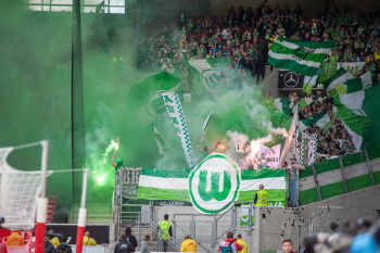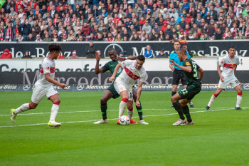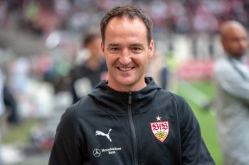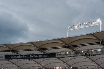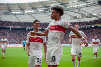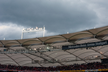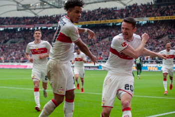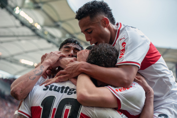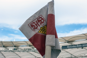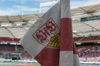 Feature, Eckfahne rot-weiss, mit VfB Wappen.