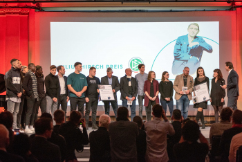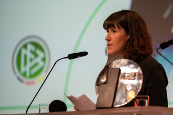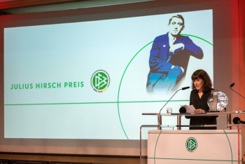Juia Hirsch, die Urenkelin von Julius Hirsch nimmt die Auszeichnungen vor.