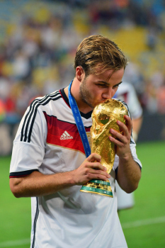 Die Deutschen feiern den Weltmeistertitel 2014 / Mario GOTZE kuesst den Pokal - 13.07.2014 - FUSSBALL - Deutschland vs Argentinien, WM 2014