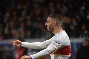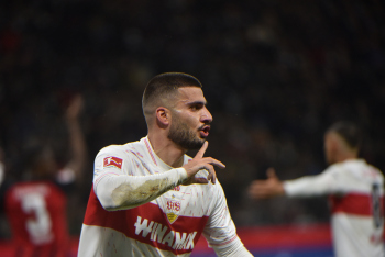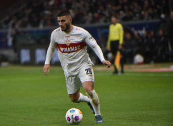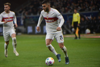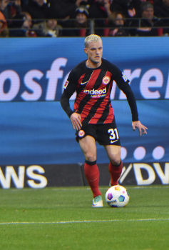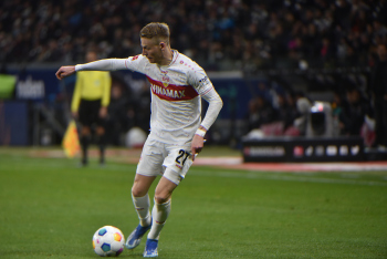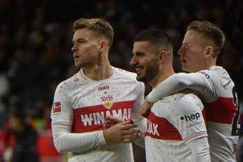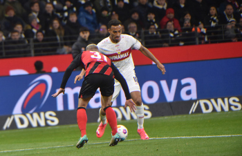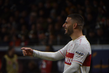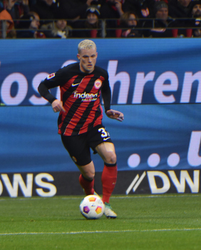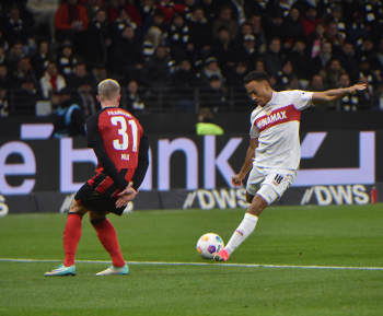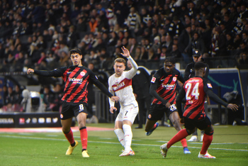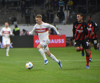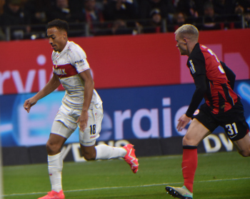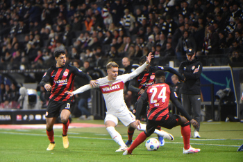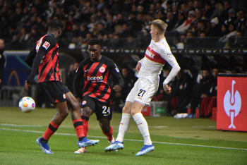 Farès Chaïbi (8, Eintracht Frankfurt), Aurelio Gabriel Ulineia Buta (24, Eintracht Frankfurt), Junior Dina Ebimbe (26, Eintracht Frankfurt) gegen Maximilian Mittelstädt (7, VfB Stuttgart)